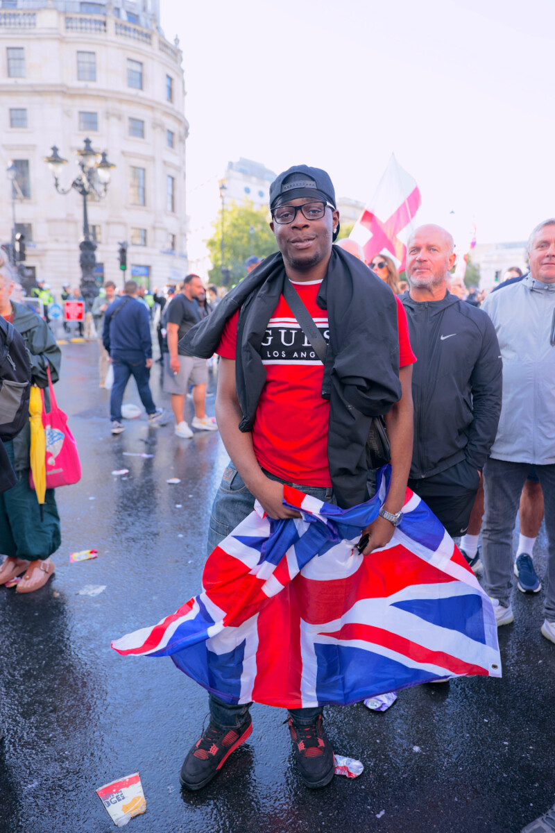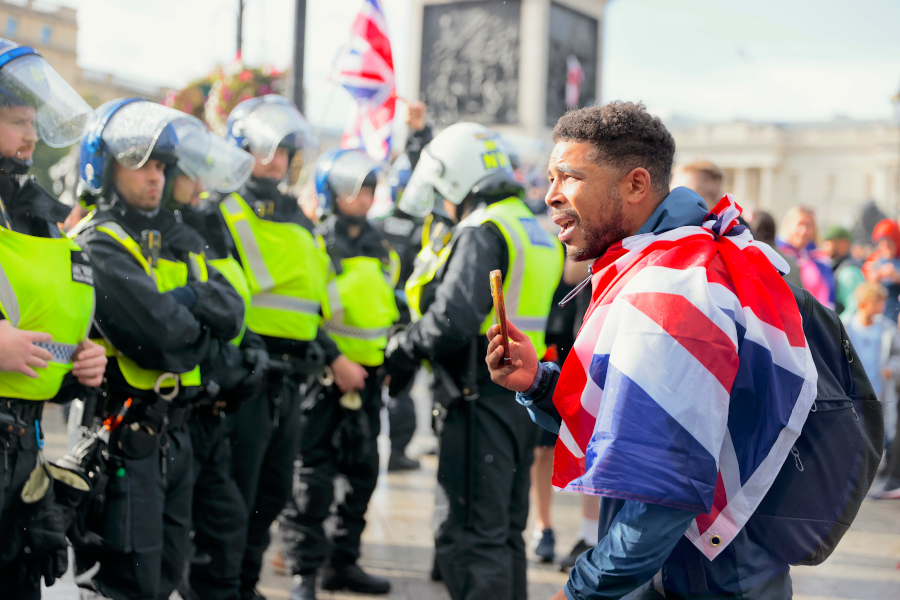 Reports estimate that tens of thousands assembled outside Charing Cross, many waving the Union Jack in full colour while chanting slogans. The gathering disrupted movement in the area and created a highly charged environment as voices echoed through the busy streets.